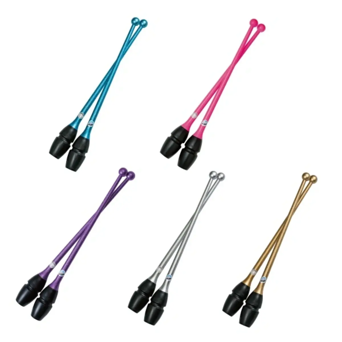As maças combinadas e conectáveis da Chacott, com 45,5 cm, são ideais para ginástica rítmica. Fabricadas em plástico com cabeça de borracha, possuem equilíbrio perfeito e permitem a fixação segura da bola na cabeça da segunda maça.