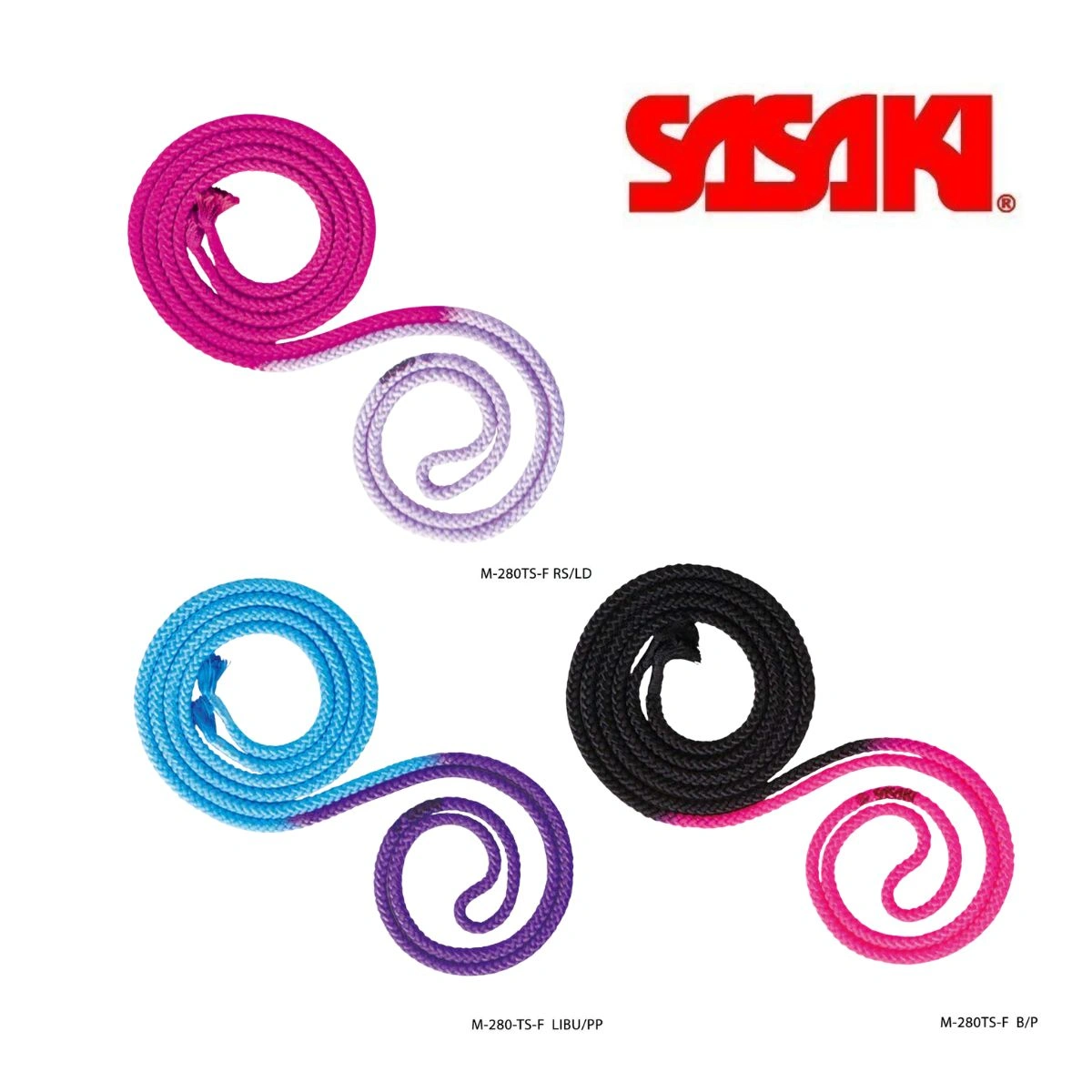 Corda profissional para ginástica rítmica. O modelo M-280TS destaca-se pelas cores vibrantes. A corda possui certificação da FIG.