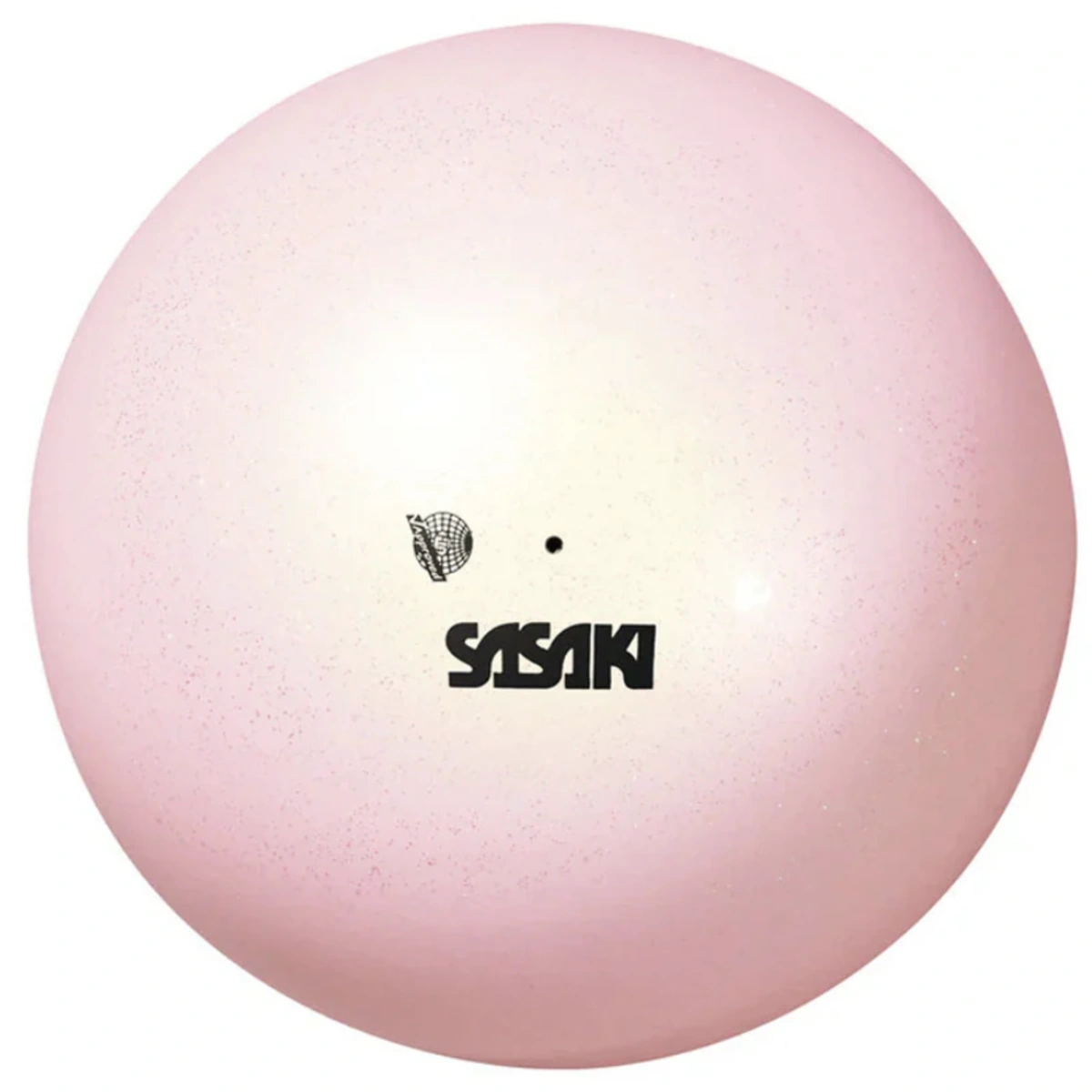 Uma bola profissional para ginástica rítmica. O modelo M-207AU (Aurora) diferencia-se pelas cores de dentro para fora. A bola é certificada pela FIG. A borracha é muito macia e um pouco viscosa.