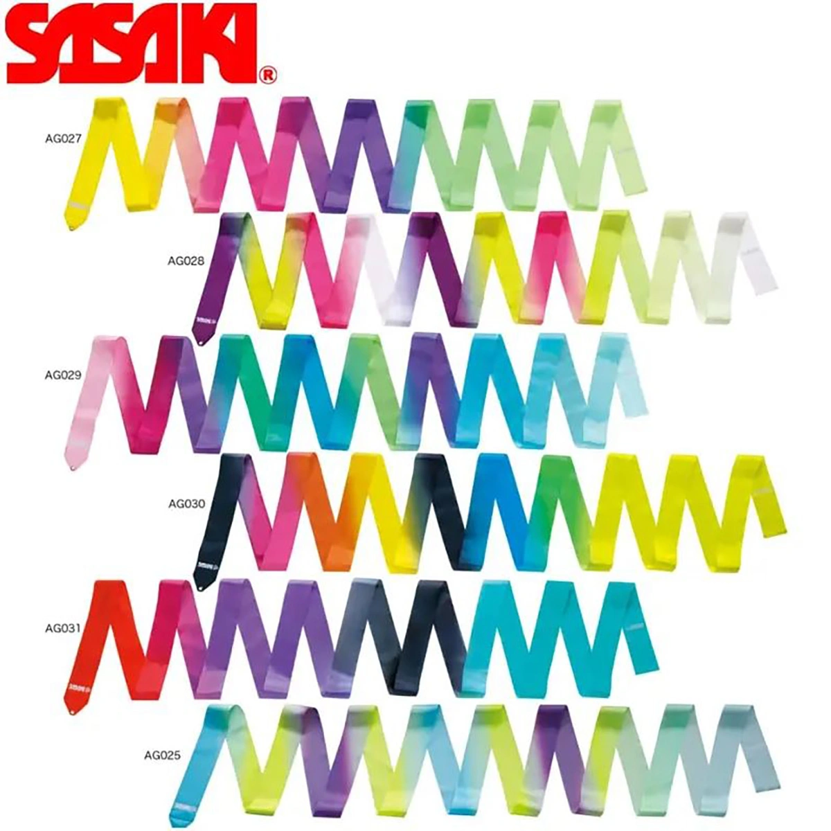 Fita profissional para ginástica rítmica. O modelo MJ-715HG (Gradiente de Alta Tonalidade) é uma fita multicolorida com tonalidades variadas e transições fluidas. A fita possui certificação da FIG.