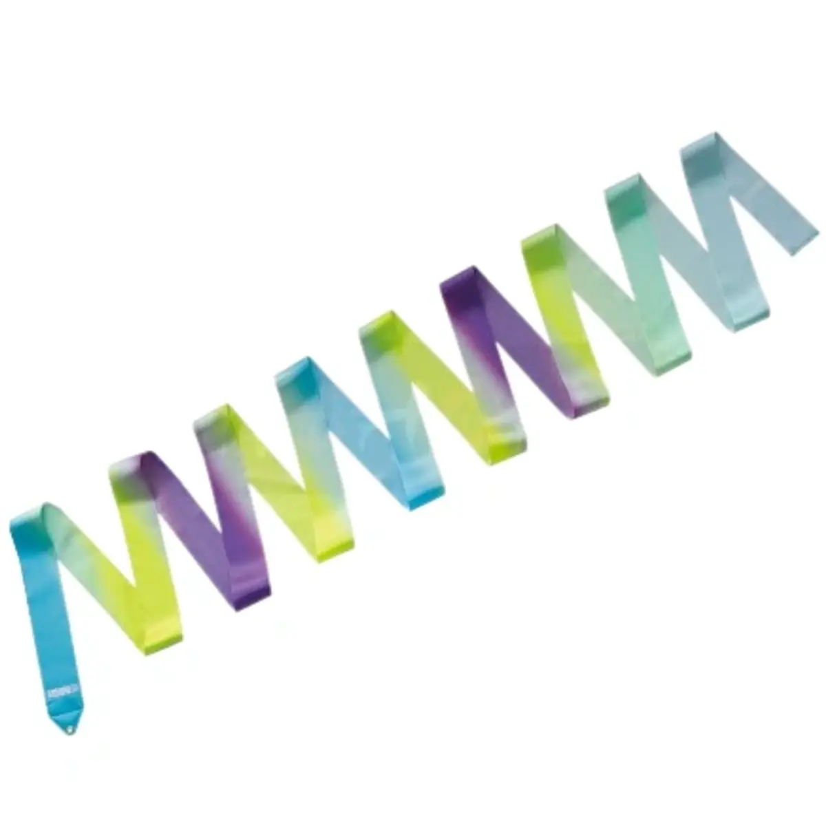 Fita profissional para ginástica rítmica. O modelo MJ-715HG (Gradiente de Alta Tonalidade) é uma fita multicolorida com tonalidades variadas e transições fluidas. A fita possui certificação da FIG.