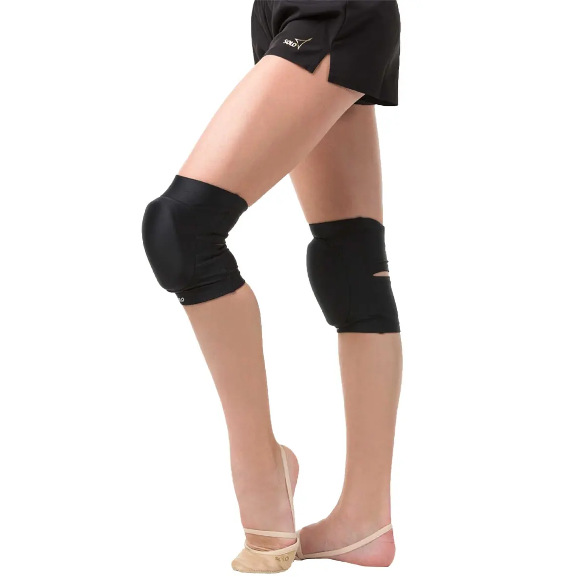 Joelheiras para ginástica e dança com alto grau de proteção. Uma copa moldada com formato anatómico que protege contra impactos, enquanto o tecido elástico da parte superior se ajusta perfeitamente e remove a humidade da pele. As joelheiras são vendidas ao par.