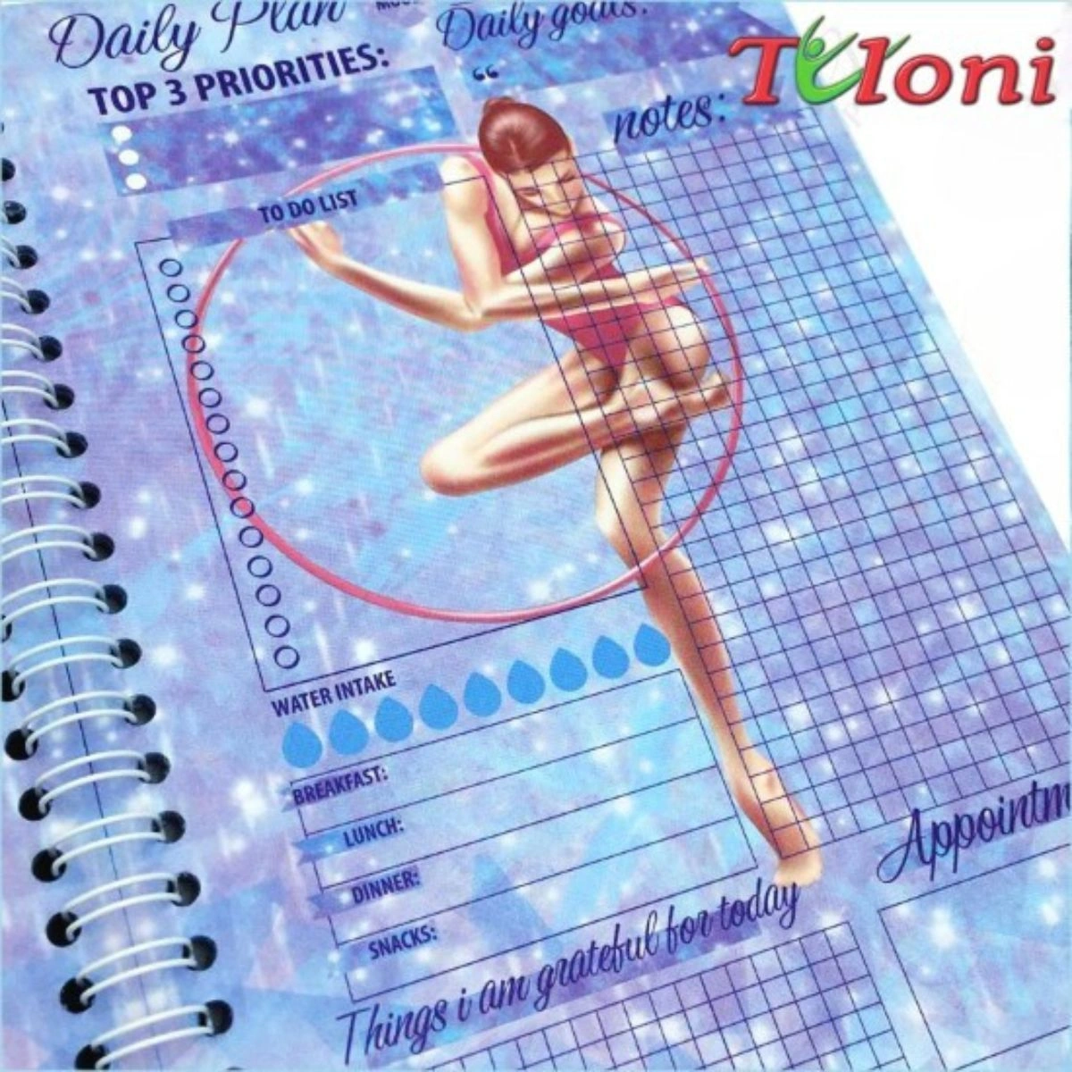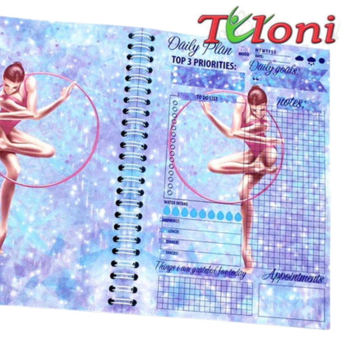 Diário cheio de estilo para jovens ginastas. Capa grossa e brilhante com tema de ginástica. Formato A5 com dimensões 15x21 cm. Composto por 49 folhas para anotações importantes e planeamento. Ótima qualidade. Um presente perfeito para uma jovem ginasta.