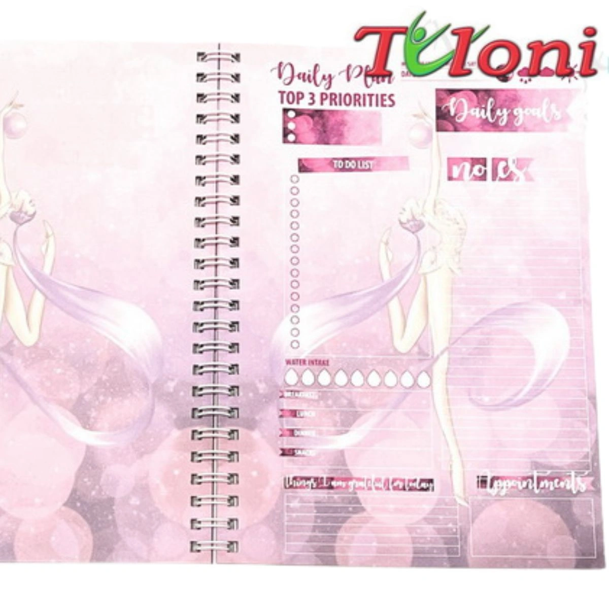 Diário cheio de estilo para jovens ginastas. Capa grossa e brilhante com tema de ginástica. Formato A5 com dimensões 15x21 cm. Composto por 49 folhas para anotações importantes e planeamento. Ótima qualidade. Um presente perfeito para uma jovem ginasta.