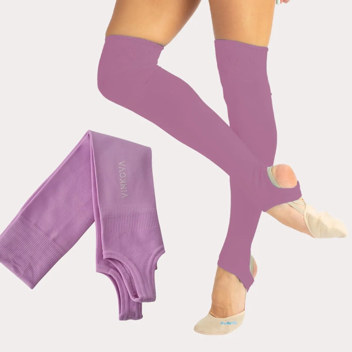 Perneiras para treinos de ginástica rítmica e outros desportos. Permitem manter as pernas quentes, contribuindo para uma temperatura mais estável e reduzindo a probabilidade de lesões. O nosso tecido especial evita que as perneiras deslizem, garantindo que permanecem no lugar durante o treino. Nova abertura no calcanhar para maior conforto durante os treinos e os aquecimentos antes das competições. Tamanho único, adequado para crianças e também para ginastas adultas.